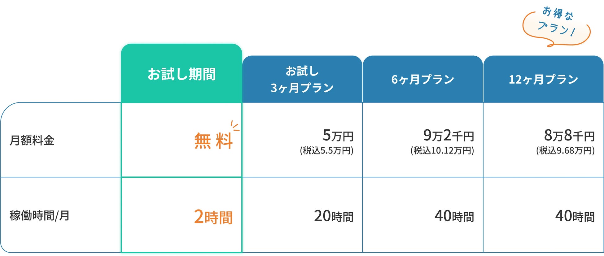 - 料金は時間単位あたり業界最安値水準:採用コスト0円、初期費用0円