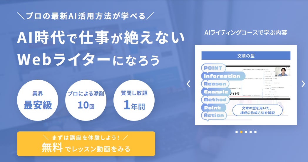 このコースにより、ライターはAIを効果的に活用しつつ、人間ならではの創造性と編集能力を発揮し、より高付加価値な仕事に集中できるようになります。