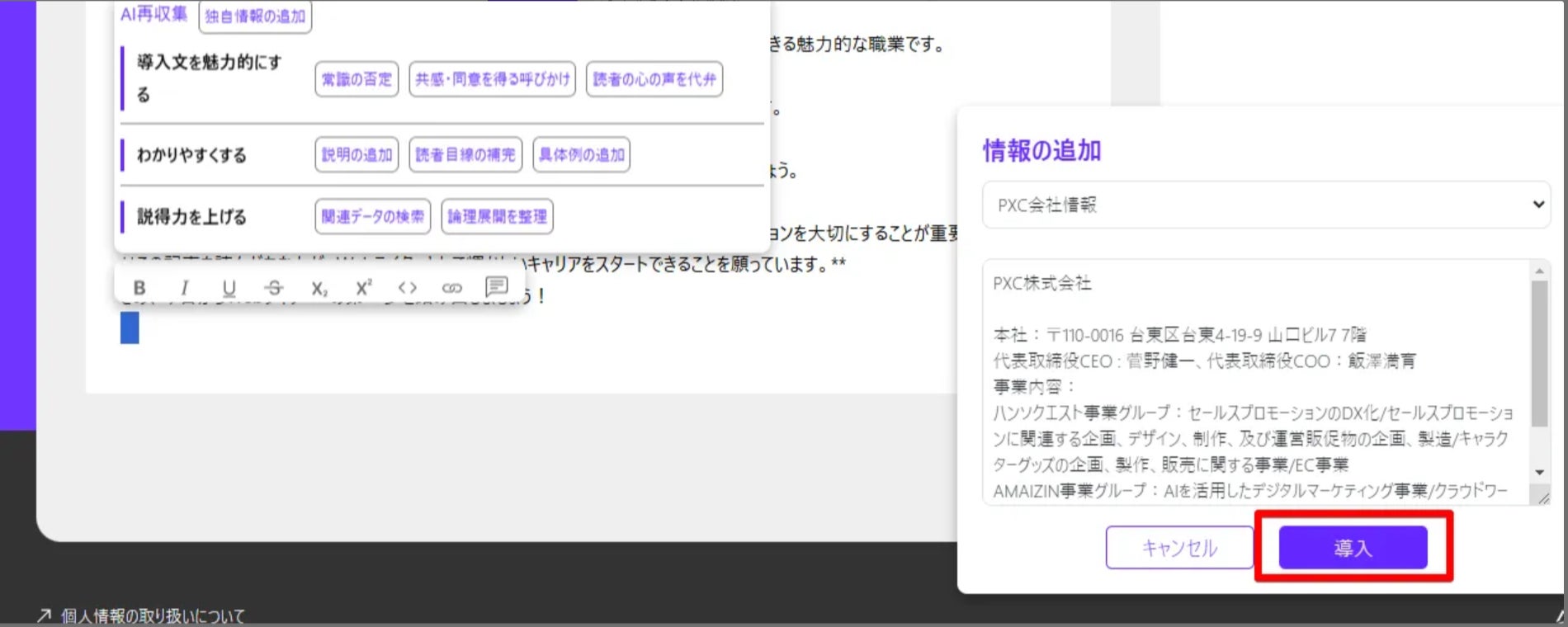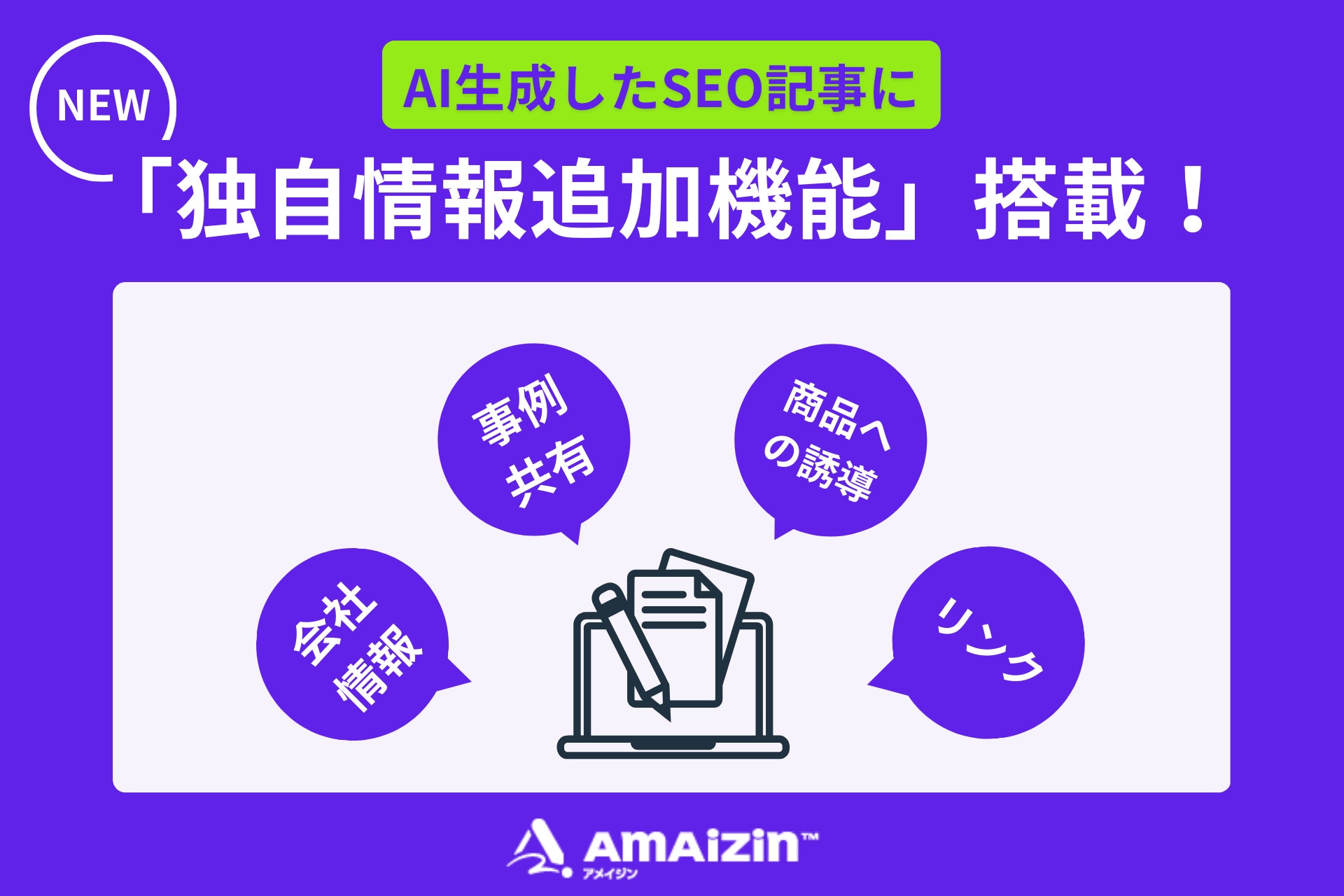 PXCは、AIによるコンテンツ生成サービス「AMAIZIN」の「SEO記事生成」において、更なる工数減少と精度向上に繋がるアップデートを実施いたしました。繰り返し入力することの多い自社独自の情報を簡単に呼び出せる「独自情報追加機能」の搭載、またAIモデルの変更とアルゴリズム修正を行い、SEO記事精度が向上しました。