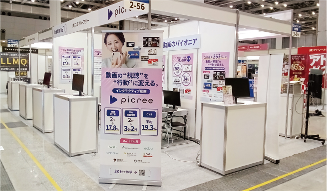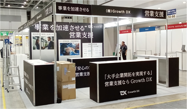 創意工夫点:各社の要望を叶えながら、ブース規格のレギュレーションに合わせたパネルを製作。施工時間に指定がある展示会の為、手際よく対応を行う段取りが重要でした。