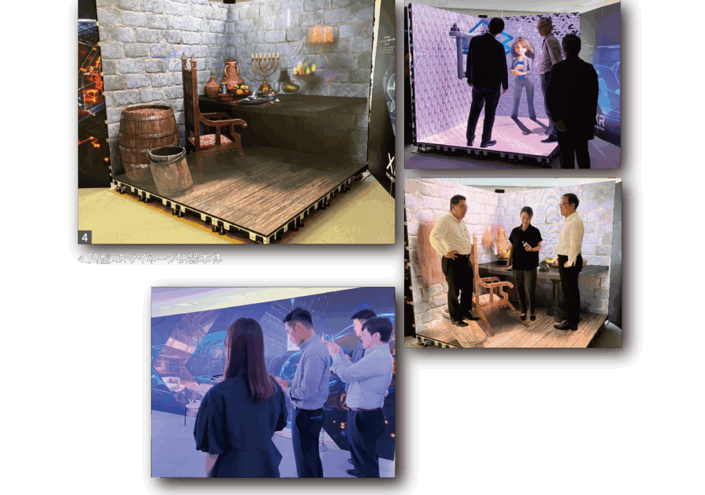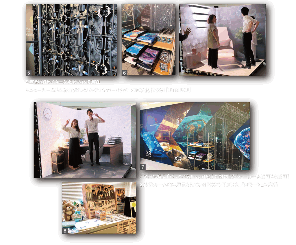 来場された方々は、XR技術についての「知識」はあるものの、実際に機材を間近で見て・触れるのは初めてという方が多く、皆一様に驚きや納得の感想を述べられていました。特に、多くの人がゴーグル等のディバイスを必要とするXR体験はあるものの、〔裸眼で見えるXR〕且つ〔自分自身(=質量のあるもの)がXR空間に同時に存在できる〕“凹型サイネージ”は、国内でもまだ数箇所でしか体験できないため、来場いただいた皆さまには、非日常的体験ができることも、ショールームへの来場価値に感じていただくことができました。